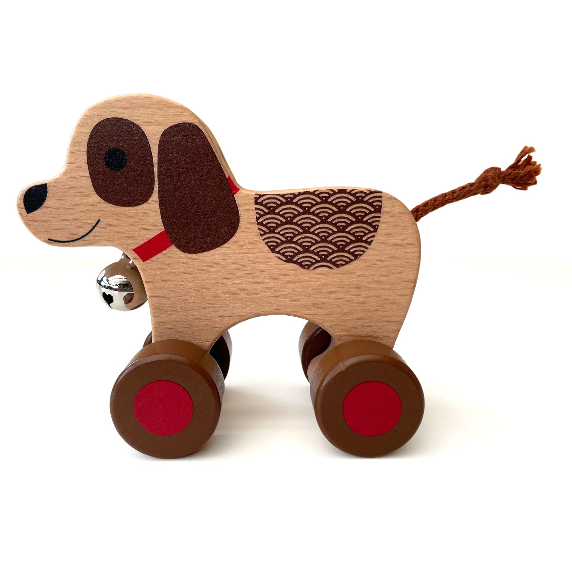 Made from eco-friendly wood and designed and tested for babies, these lovable animals can be pushed along, sounding her bell. Helps hand eye coordination, fine motor skills and distinguishing environmental sounds.