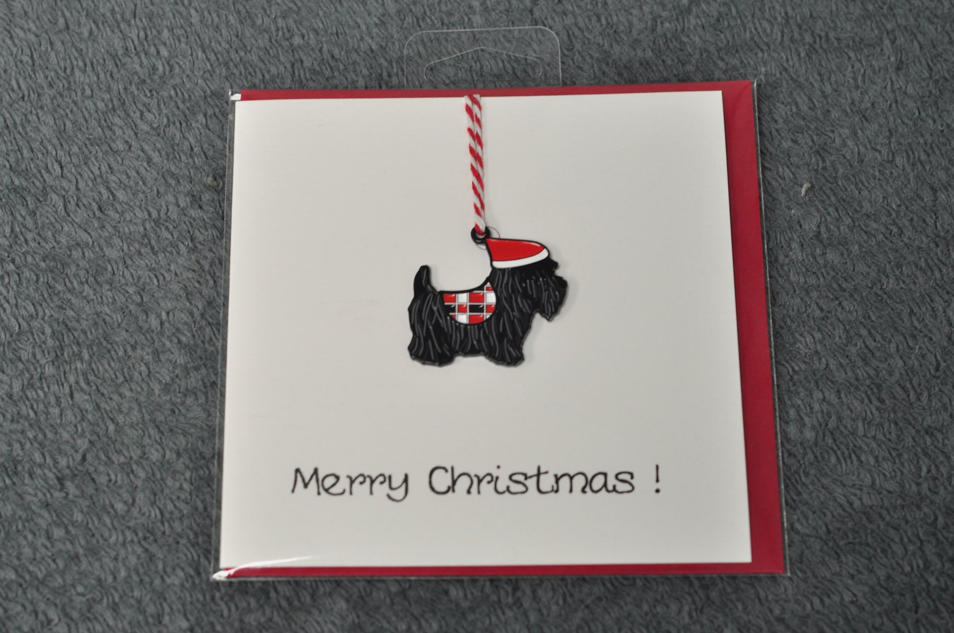 It has the words Merry Christmas and a picture of a Scottie Dog in a Santa hat, the design of which is on the included enamel charm, which hangs a red and white string, perfect for hanging on your tree. This would make a wonderful gift for a special teacher, teaching assistant or pupil support assistant!
