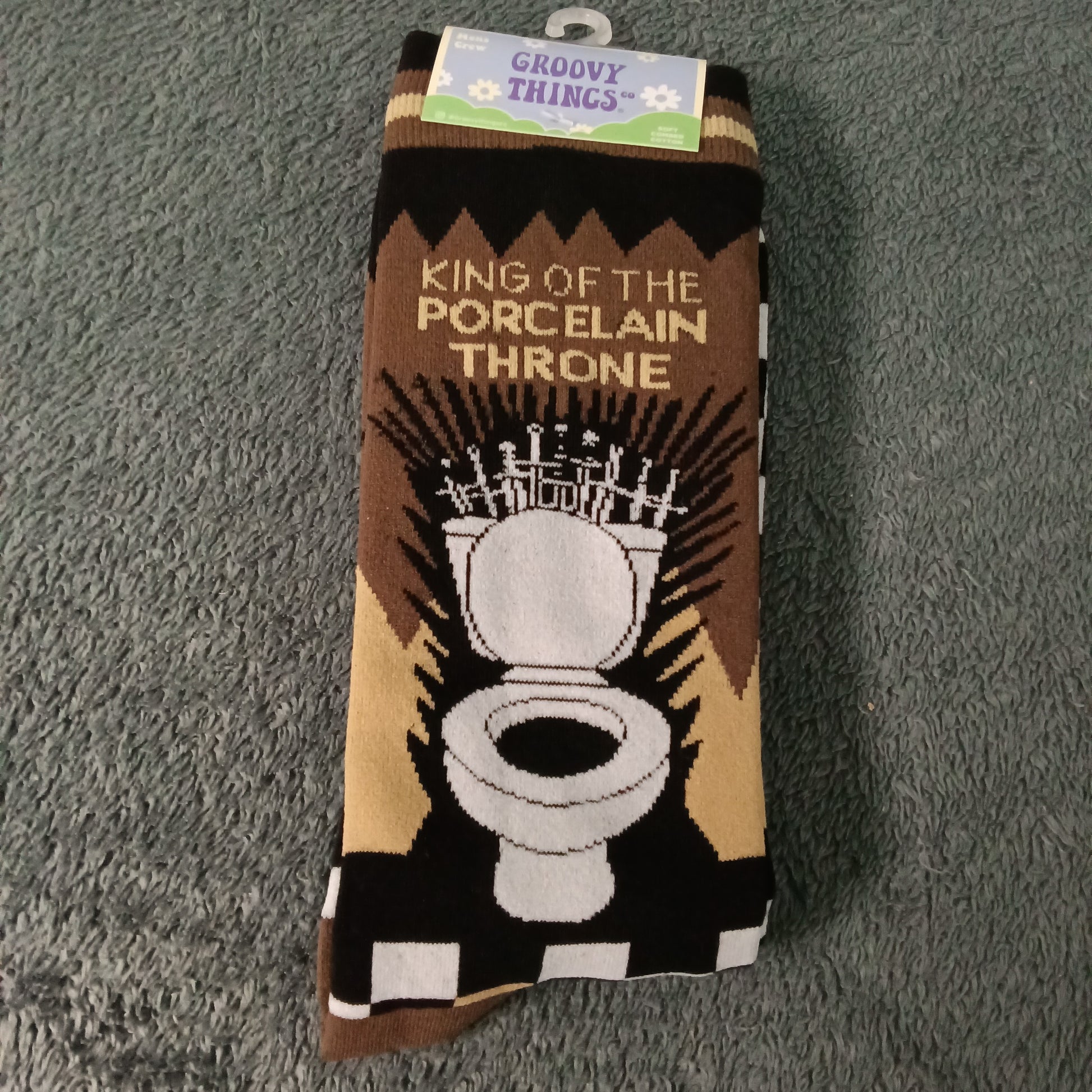 Groovy Things King of the Porcelain Throne Socks - Adult 9-12, Black Brown multi